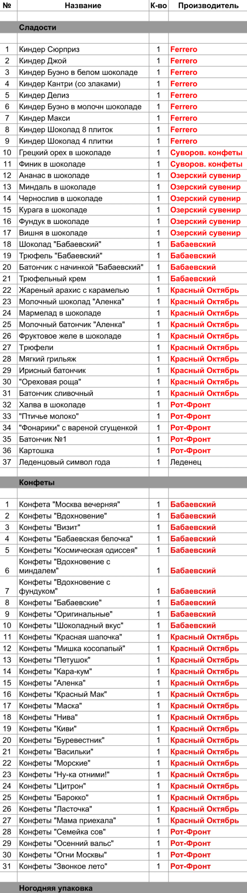 Опубликовано в Составы подарков